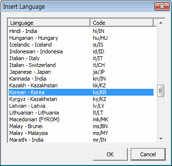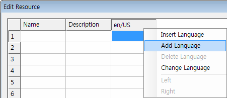 Click the [Add Language] pop-up menu of the language column from the edit resource dialog box.