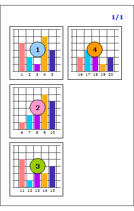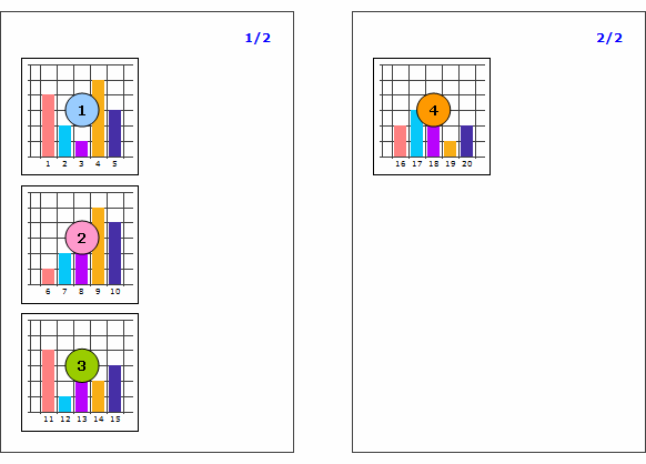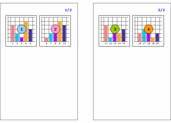 Chartに連結されたデータセットのデータ件数が20件の場合、"出力方向"属性値によって次の通りにバインディングされます。