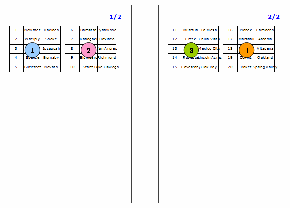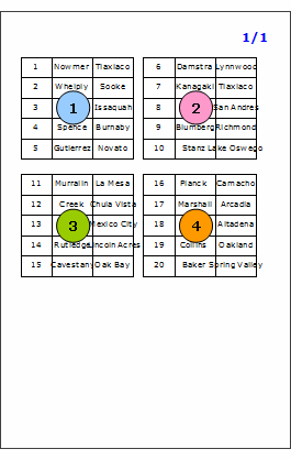 横方向に出力し、ページの右段にくると下に移動して出力する |