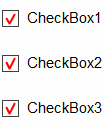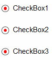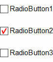 "チェックスタイル"属性はフレームとチェックマークのスタイルのみ変更する属性です。例えば、RadioButtonの"チェックスタイル"属性値を"チェック"に変更すると、スタイルのみチェックで、1つのグループで1つのみチェックされるRadioButtonの特性はそのまま維持されます。