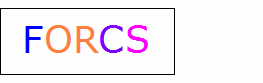 Example: 描画タイプが"HTML"で、テキストが"<FONT color=#0000ff face=Verdana><FONT size=6>F<FONT color=#ff8040>OR</FONT><FONT color=#8000ff>C</FONT><FONT color=#ff00ff>S</FONT>"の場合