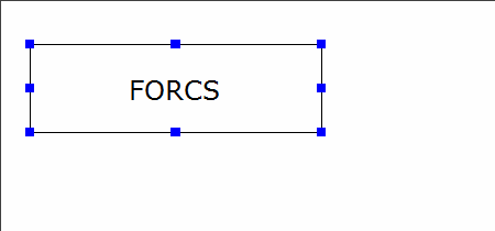 Viewerウィンドウで"編集可能"属性値が"はい"のラベルをクリックすると、青色長方形スタイルの基準点が表示され、