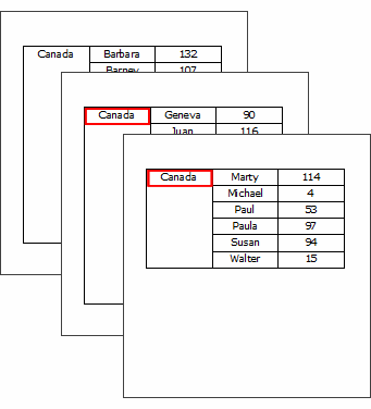 改ページの固定属性値を"はい"に設定すると、データ値が同一のラベルがページを越えて分割して出力される時、ラベルのテキストを繰り返して出力します。