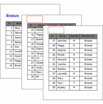 上位グループ ヘッダーの固定属性を"はい"に設定すると、DataBand、Group HeaderBandのデータがページを超えて出力される時、ページ上段にGroupHeaderBandを繰り返して出力します。