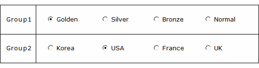 RadioButtonの"Group Name"を"Group1"と"Group2"に設定した場合