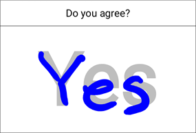 たとえば、テキストがYesであれば、署名後にもテキストを維持の属性値によって以下のように適用されます。