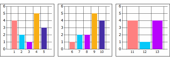 総3つのChartでバインディングされます。1番目と2番目のChartはX軸の目盛数を5で構成し、3番目のChartは3つの目盛で構成されます。