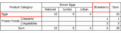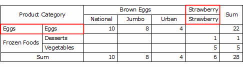 以前段階のピボット同一の値の場合(Eggs, Strawberry)、セルを結合します。