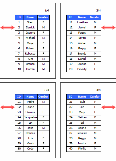"見開きページ"属性値を"はい"に設定すると、とじしろが適用される時、現在のページと次のページを見開きページでバインディングされます。