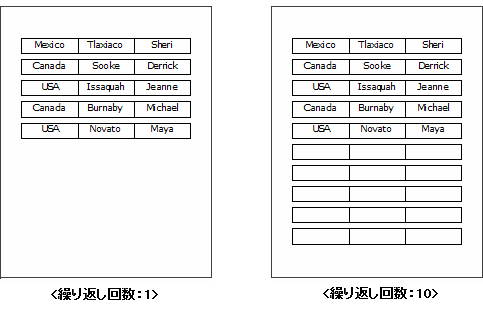 データ件数より小さい値で設定した場合にはデータ件数分バインディングし、データ件数より大きい値で設定すると残った回数(5回)分空きLabelでバインディングされます。