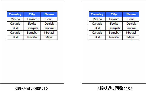 Example: データ件数が5で、Tableが追加されたDataBandに繰り返し回数を設定した場合