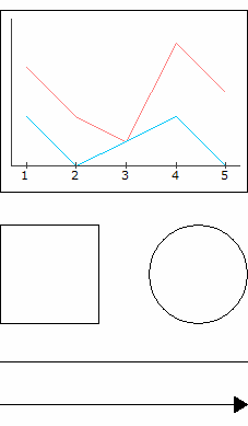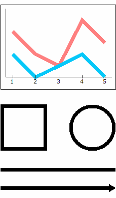 折れ線グラフ、長方形、円、線、矢印の線の太さ
