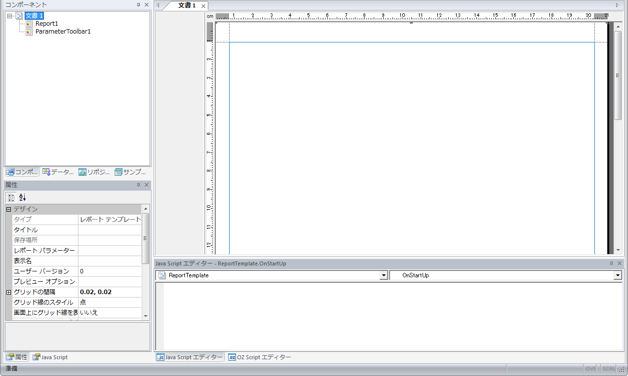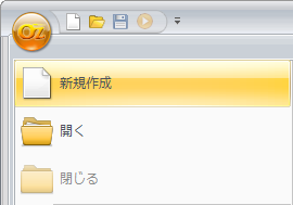 Designerの左側上段のOZアイコンをクリックして[新規作成]メニューをクリックします。