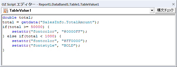 [構文チェック]ボタンをクリックして入力したScriptに文法エラーがあるかを確認できます。