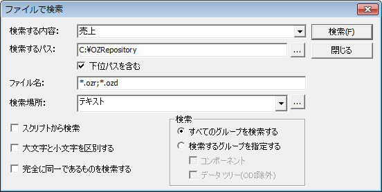 スクリプトで検索する場合、"スクリプトから検索"オプションをチェックして[検索]ボタンをクリックしてください。