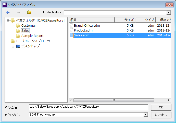 <Shift>キーを押した状態でホームタブでプレビューアイコンをクリックします。"リポジトリファイル"ダイアログでSDMファイルを選択して[OK]ボタンをクリックすると、データベースサーバーに接続せずにSDMファイルでレポートをプレビューします。