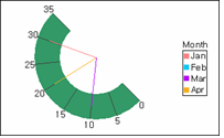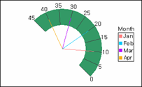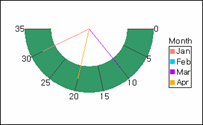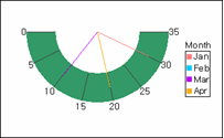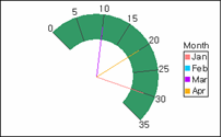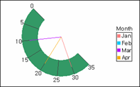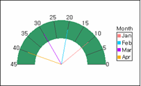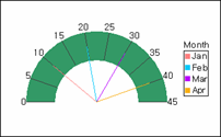 次の例の場合、弧の角度が180、軸の太さは40に設定し、軸の色は"[Y/数値軸]タブで設定しました。