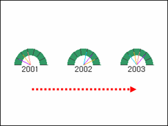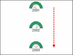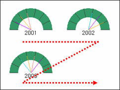 開始角度は"反転"オプションに構わず、必ず原点から時計回り方向に追加されます。(ゲージChartの原点は9時方向です。)