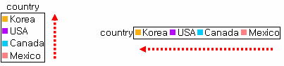 凡例に表示されるデータ値が"Mexico、Canada、USA、Korea"順の場合、"逆順"オプションによって表示順序が異なって適用されます。