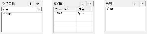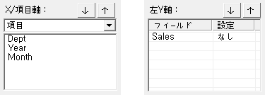 例えば、X/項目軸、左Y軸、右Y軸を次の通りに設定した場合