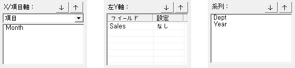 例えばX軸、左Y軸、系列を下図のように設定した場合