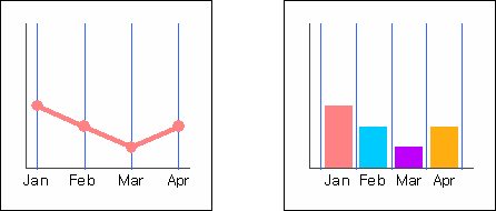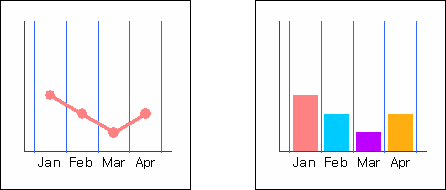 チャートタイプに構わず、必ず項目線(目盛線)にX軸ラベルとY軸値を表示します。
