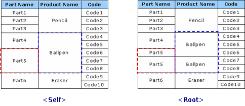 Selfの場合にはCode6とCode7のマスターデータに構わず、Part5とBallPen Labelをグルーピングし、Rootの場合にはグルーピングされずに分離されることを確認出来ます。